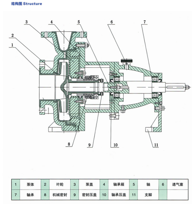 IHF型氟塑料化工离心泵为单级单吸离心泵,参照国际标准ISO2858标准设计。介质过流部分的材料采用FEP、PVDF等材料。具有耐高温强腐蚀性能,广泛适用于化工、制药、石油、冶金、冶炼、电力、电镀、印染、农药、造纸、食品、化纤等行业在-85℃~200℃温度条件下长期输送任意浓度的各种酸、液碱、强氧化剂等多种腐蚀性介质。