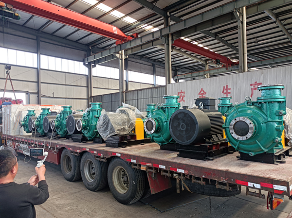 2022年4月客户订购的渣浆泵已经装车发货。我公司长期供应泥沙泵、渣浆泵、脱硫泵、潜水泵等。